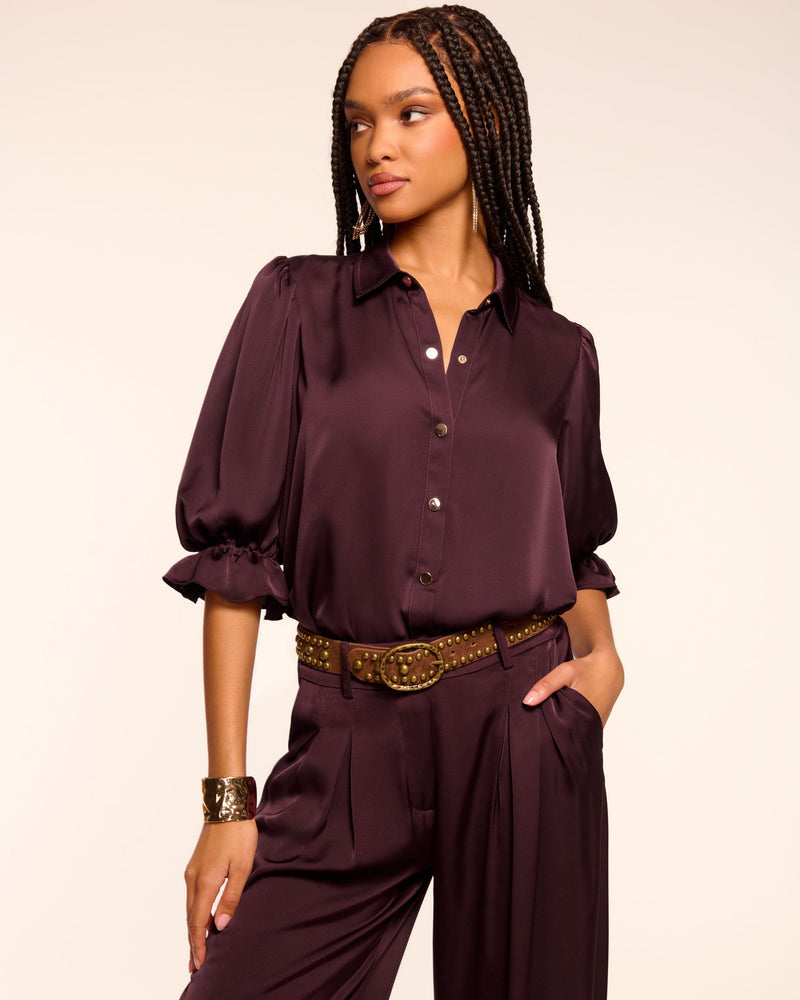 Colette Button-Front Flutter-Sleeve Top